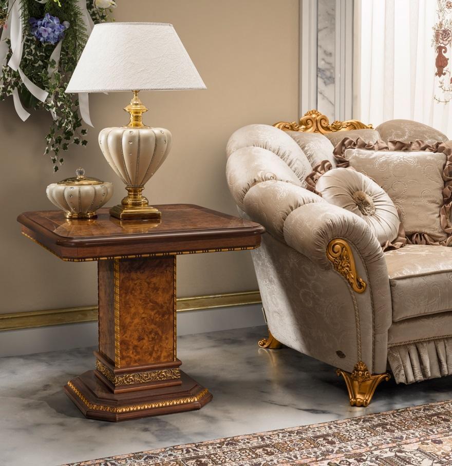 Dieser elegante Beistelltisch im Barock-Rokoko-Stil aus Holz in Braun-Gold ist ein exquisites Möbelstück für Ihr Zuhause. Mit seinen großzügigen Abmessungen von ca. 70 x 70 x 62 cm bietet er ausreichend Platz für Dekorationen, Bücher oder einen Telefonapparat. Das prächtige Farbschema aus Braun und Gold verleiht dem Tisch eine königliche und zugleich warme Atmosphäre, die Ihren Wohnbereich bereichert.