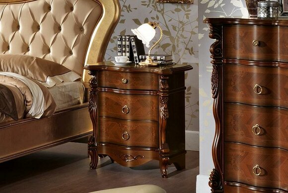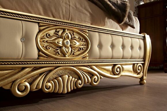 Produkt: Bett Doppel Betten Nachttisch Kleiderschrank Kommode Schlafzimmer Möbel Set in Mehrfarbig (Braun-Gold; Perlweiss-Gold; Beige-Gold).