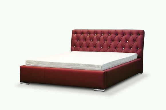 Die nach hinten gebogene Kopfstütze verleiht dem Bett eine moderne und einladende Optik. Die gesteppte Kopfstütze ist auf einer 3 cm hohen Schaumstoffpolsterung besonders bequem. Eine ansprechende Steppung mit einer Imitation von Swarovski-Kristallen verleiht dem Bett einen Hauch von Eleganz und Luxus.