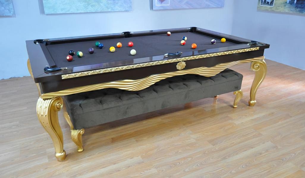 Luxuriöser Billardtisch mit goldenen Beinen und Abdeckplatte – Perfekt als Ess- und Spieltisch