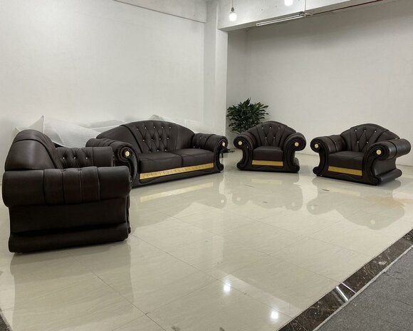 Braune Sofagarnitur Chesterfield Leder Sofa Couch Gruppe 3+2+1 Set