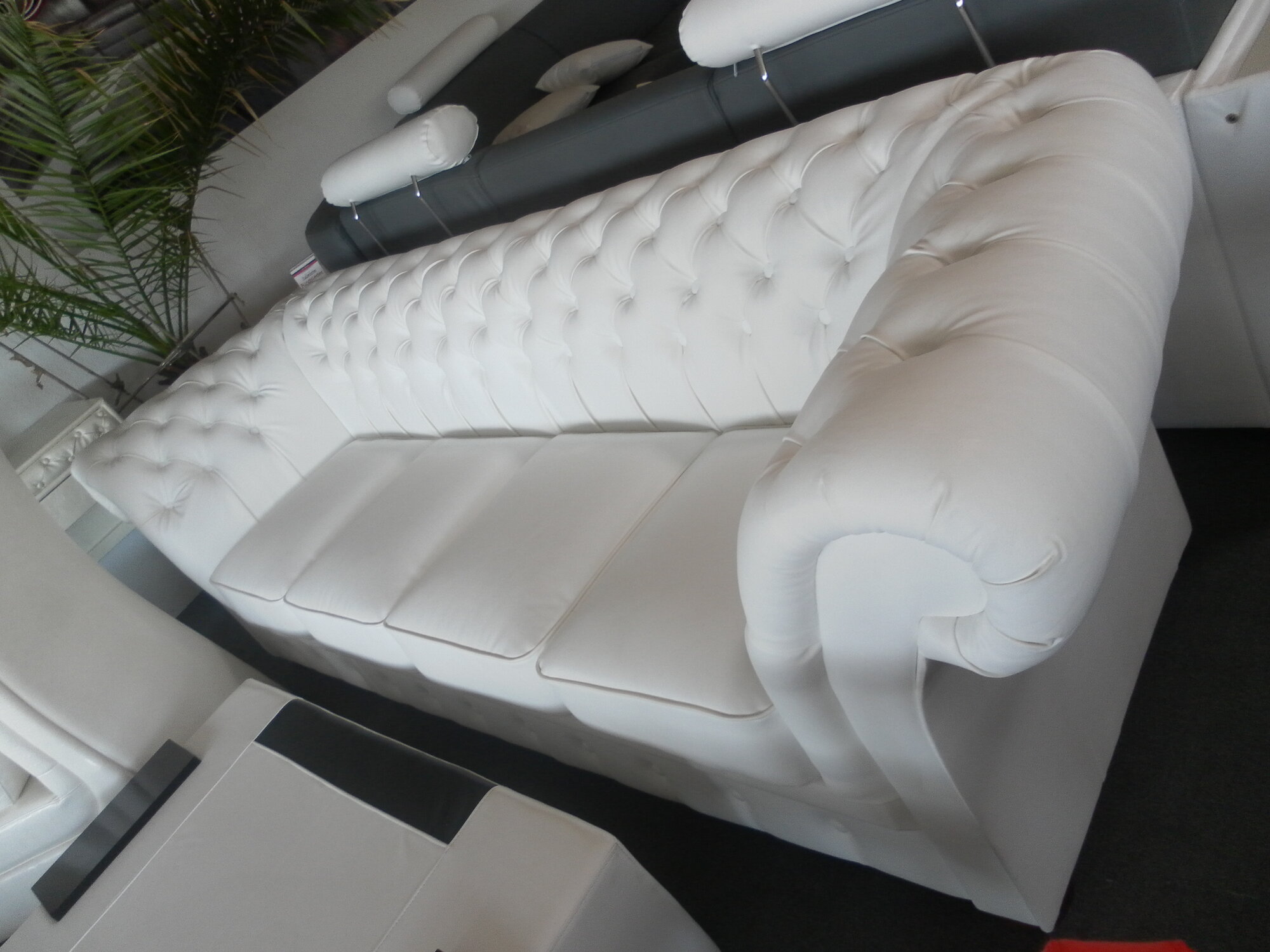 Entdecken Sie das beeindruckende CHESTERFIELD XXL 270cm Big Sofa, das Platz für bis zu 4 Personen bietet und ideal für Ihr Wohnzimmer ist. Mit seinem klassischen Stil und der Auswahl an Farben wird dieses Sofa zum perfekten Mittelpunkt Ihrer Einrichtung. Gefertigt aus Premium Kunstleder, vereint es Eleganz und Komfort in einem aktuellen Design, das jeden Raum aufwertet.
