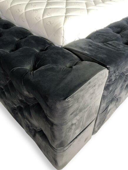 Das elegante Schwarz verleiht diesem Bett eine markante Präsenz, während das hochwertige Samt- und Stoffmaterial ein Gefühl von Luxus und Stil vermittelt.