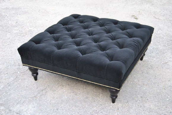 Chesterfield Hocker Stoff Design Couch Polster Textil Modern Schwarz Beistell