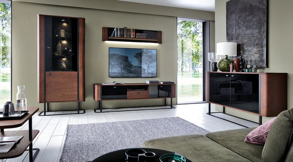 Rückwand & Einlegeböden: MDF (Mitteldichte Holzfaserplatte), furniert & lackiert