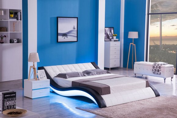 Hier sind die Details zum Design-Bett mit digitalem Sound und USB-Anschluss: