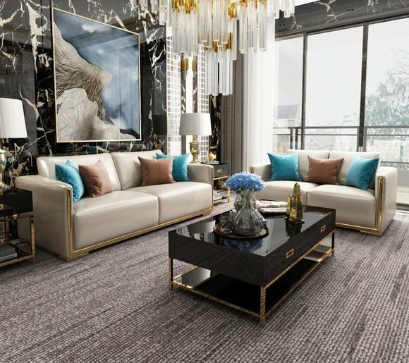 Die Design Metall Couch in Bunt(Weiß\Gold) vereint exquisiten Stil mit robustem Design, das Ihrem Wohnraum einen Hauch von Luxus verleiht. Diese Polstergarnitur ist nicht nur ein Blickfang, sondern auch ein Symbol für Komfort und Eleganz.