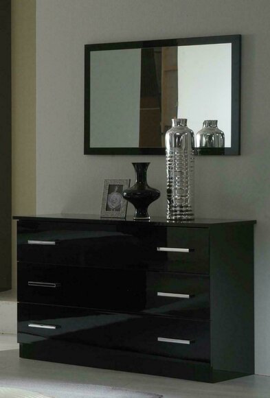 Der Kleiderschrank mit einer Länge von ca. 181 cm, einer Höhe von ca. 210 cm und einer Tiefe von ca. 54 cm bietet ausreichend Stauraum für Ihre Kleidung und Accessoires. Seine hochglänzende Oberfläche in Signalschwarz verleiht Ihrem Schlafzimmer eine moderne Note.