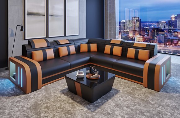 Design Sofa Couch Sitz Leder Polster Garnitur Wohnlandschaft Ecksofa A10 AVOLD L-FORM