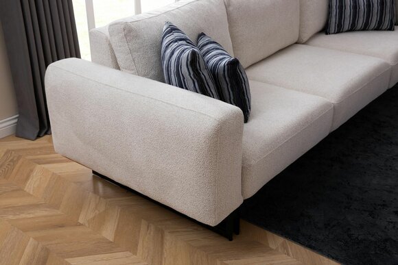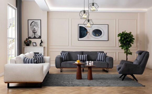 Diese Sofagarnitur besticht nicht nur durch ihre zeitgemäße Ästhetik, sondern auch durch die hochwertige Verarbeitung und die Verwendung erstklassiger Materialien wie Holz und Textil. Die Kombination aus Weiß und Grau verleiht dem Set einen modernen und edlen Look, der sich nahtlos in verschiedene Einrichtungsstile einfügt.