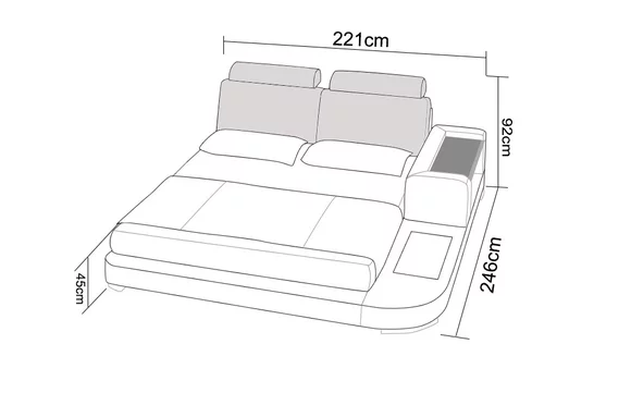 - Bettmaß: ca. 221cm x 246cm x 92cm