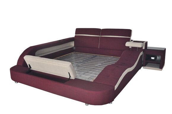 - Luxuriöses Doppelbett in Schwarz-Rot mit USB-Klickautomatik (3-fach Steckplatz)