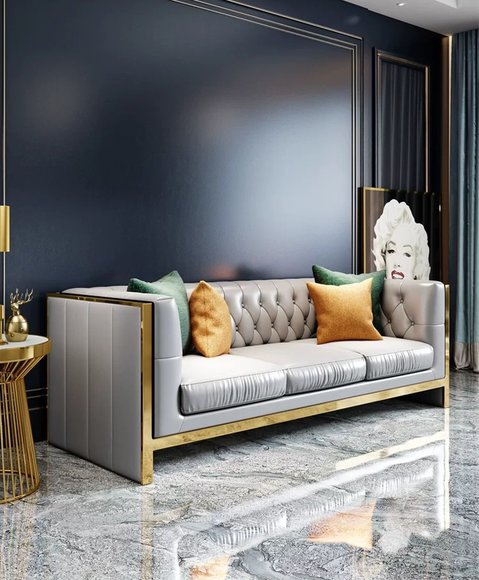Dreisitzer Couch Polster Design Sofa 3er Sitz Sofas Zimmer Chesterfield Beige