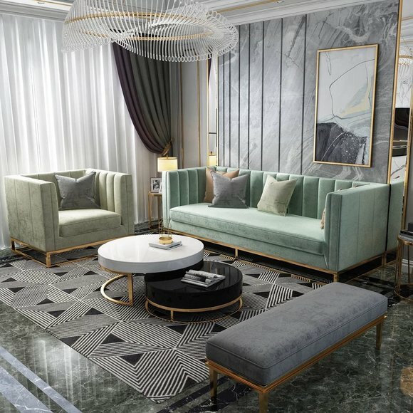 Dreisitzer Couch Polster Design Sofa 3er Sitz Sofas Zimmer Grün Chesterfield Neu