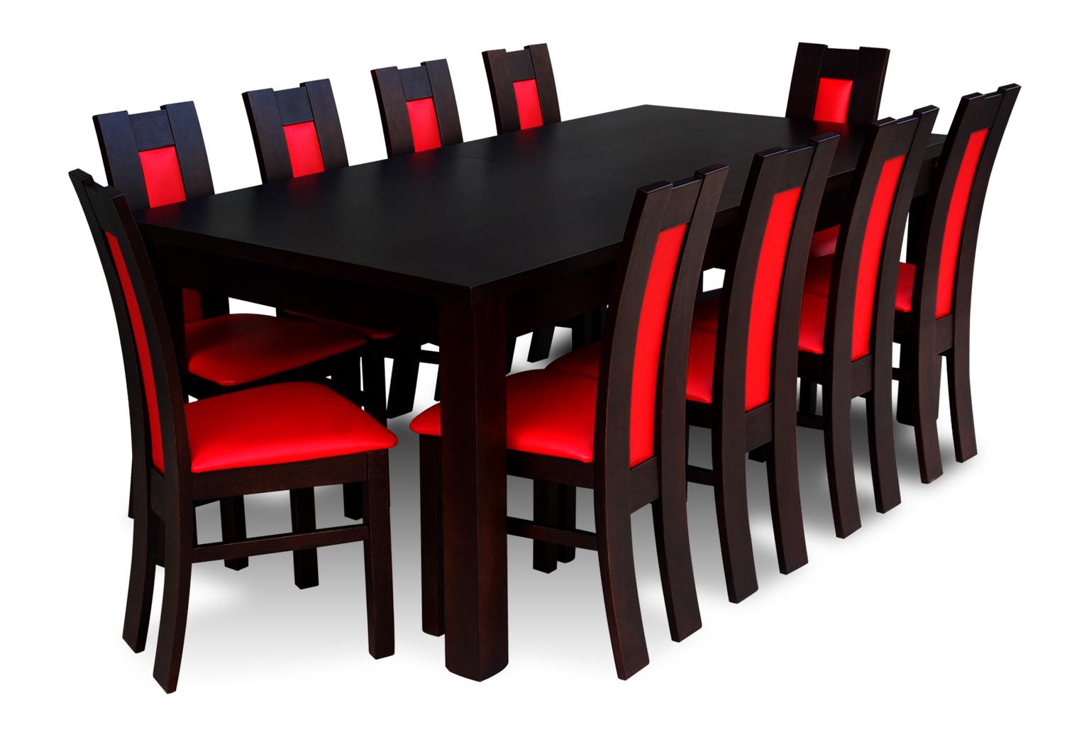 Esstisch Esszimmer Set Essgruppe Klassischer Tisch 11tlg Set Stuhl 10x Stühle Modernes Küchenset in Dunkelbraunen und Roten Farben