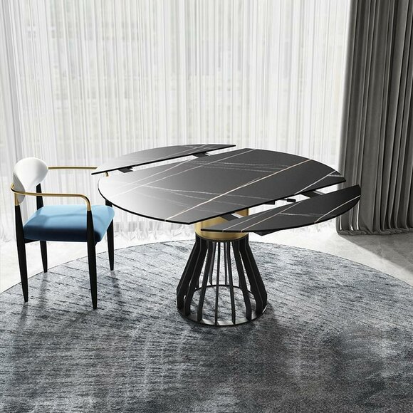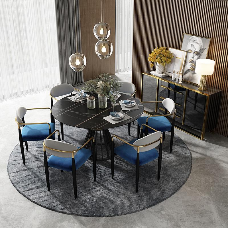 Design und Farben: Diese Esszimmer Gruppe präsentiert sich in einer lebendigen Farbpalette aus Schwarz, Himmelblau, Weiß und Gold. Die ausdrucksstarke Farbkombination verleiht Ihrem Raum eine moderne und stilvolle Atmosphäre, die sowohl ansprechend als auch einladend wirkt.
