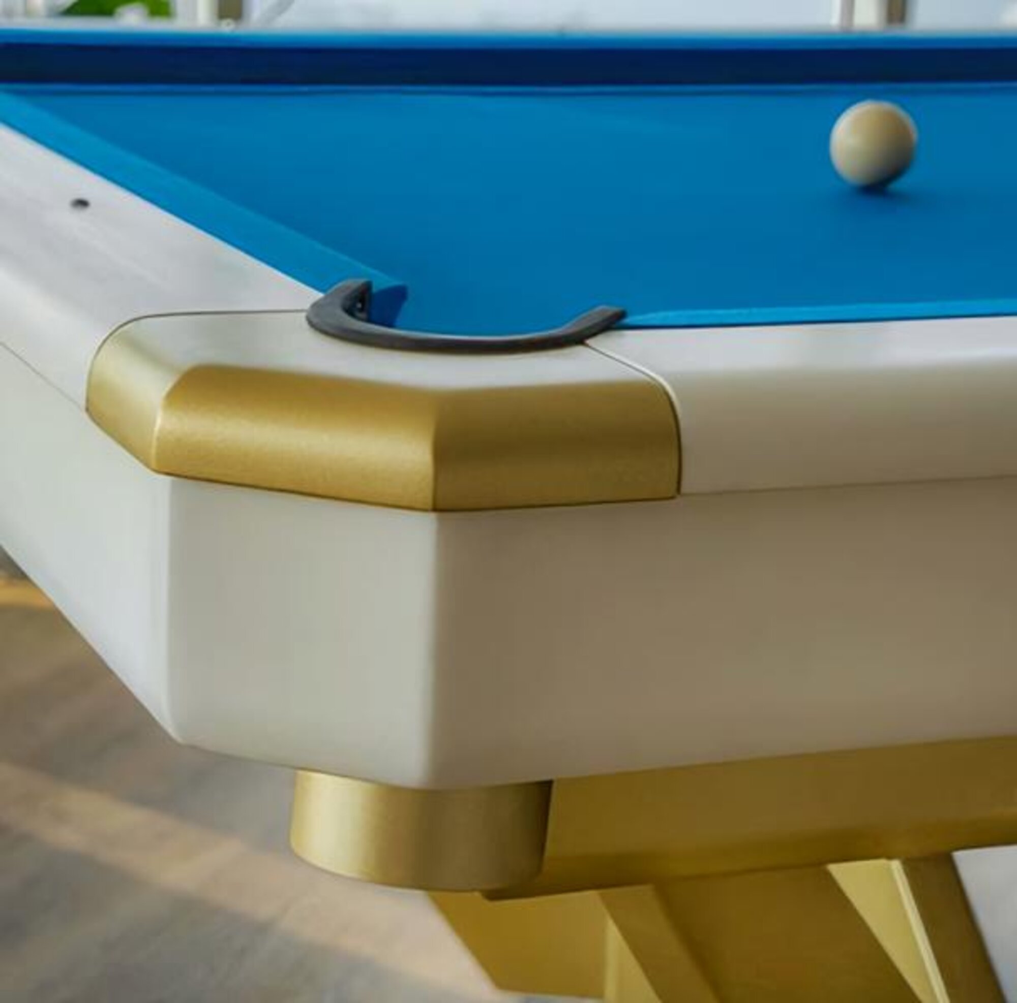 Der Millennium Billardtisch kombiniert modernes Design mit einem Hauch von Glamour. Seine hochglänzend weiße Oberfläche und die vergoldeten Tischbeine machen ihn zu einem echten Blickfang, der Eleganz und Funktionalität perfekt vereint. Dieser Tisch eignet sich ideal für luxuriöse Wohnräume, Büros oder exklusive Lounges und bietet sowohl für Freizeitspiele als auch für professionelle Turniere höchste Qualität.