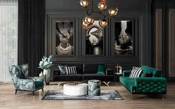 Grüner Dreisitzer Wohnzimmer Sofa Textilmöbel Polstercouchen Edelstahl