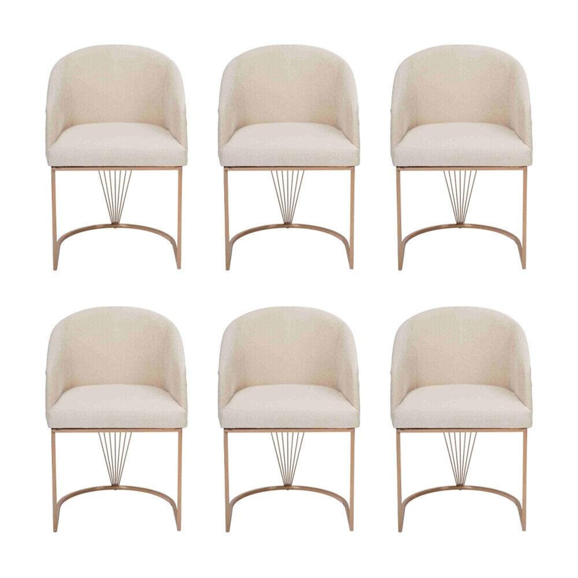 Verleihen Sie Ihrem Esszimmer mit dieser Gruppe Garnitur Stühle aus 6 Stühlen mit Textilpolsterung und Edelstahlgestell eine elegante und einladende Atmosphäre.