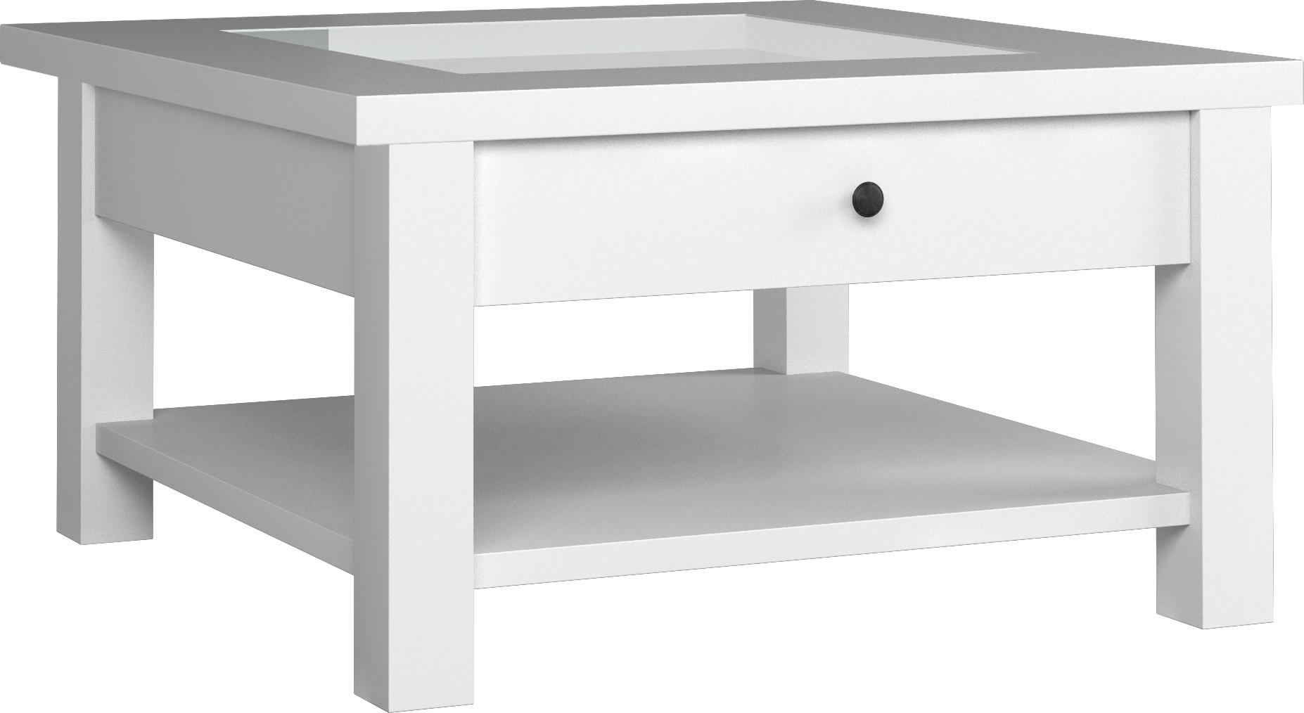 Der Couchtisch ist in einem strahlenden Weiß gehalten, das eine frische und moderne Atmosphäre schafft und sich leicht in verschiedene Einrichtungsstile einfügt.