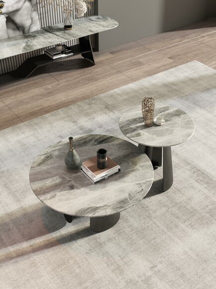 Tauchen Sie ein in die Welt des italienischen Stils mit unseren eleganten Möbelstücken, die Ihre Wohnräume mit Raffinesse und Funktionalität bereichern. Diese Serie umfasst ein Sideboard und verschiedene Couchtische, die durch ihre edlen Materialien und das zeitlose Design bestechen.