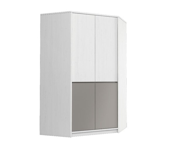 Unser Eckschrank (Mati N2D) maximiert den Raum und bietet eine großzügige Lagerfläche für Kleidung, Spielzeug und mehr. Mit einer Größe von ca. 108 x 108 x 197 cm passt er perfekt in jede Ecke des Raumes.