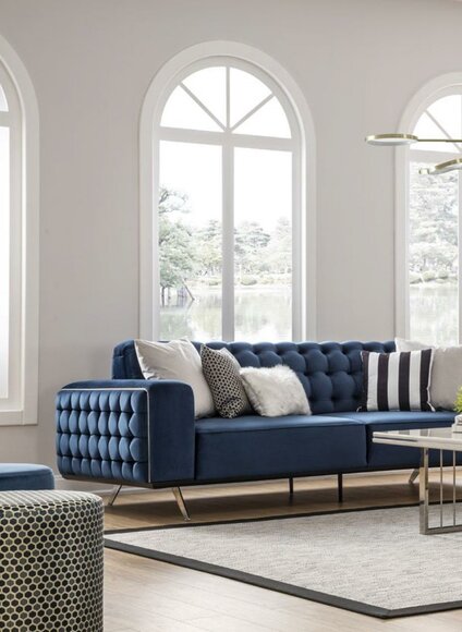 Klassische Chesterfield Dreisitzer Möbel Sofa Luxus Couchen Blau 3 Sitz Sofas