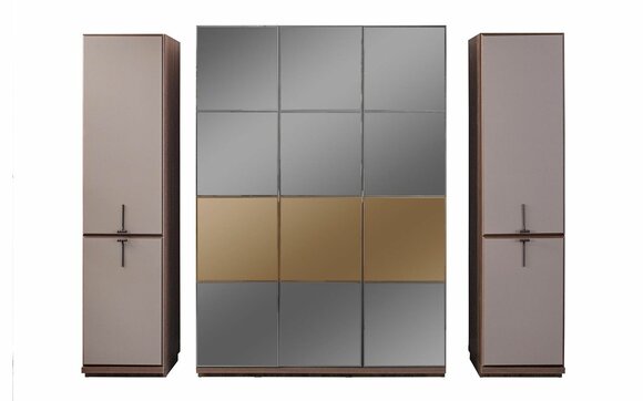 Tauchen Sie ein in zeitlose Eleganz und praktische Raffinesse mit unserem luxuriösen Kleiderschrank mit Spiegel. Mit einer imposanten Länge von ca. 250 cm, einer großzügigen Breite von ca. 70 cm und einer beeindruckenden Höhe von ca. 217 cm bietet dieser Schrank reichlich Platz für Ihre gesamte Garderobe und Accessoires.