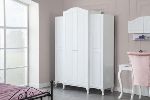 Das moderne, zeitlose Design in strahlendem Weiß fügt sich harmonisch in jedes Kinderzimmer ein und verleiht ihm eine freundliche Atmosphäre. Die klaren Linien und die hochwertige Verarbeitung machen diesen Kleiderschrank zu einem echten Blickfang.