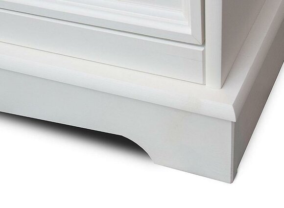 Design: Die weiße Farbe verleiht dem Schrank eine frische und zeitlose Optik, die sich nahtlos in verschiedene Einrichtungsstile einfügt. Die Kombination aus Holz und Glas sorgt für eine elegante und moderne Ausstrahlung. Die Art-déco-Elemente verleihen dem Schrank eine besondere Note, die ihn zu einem Blickfang in jedem Raum macht.