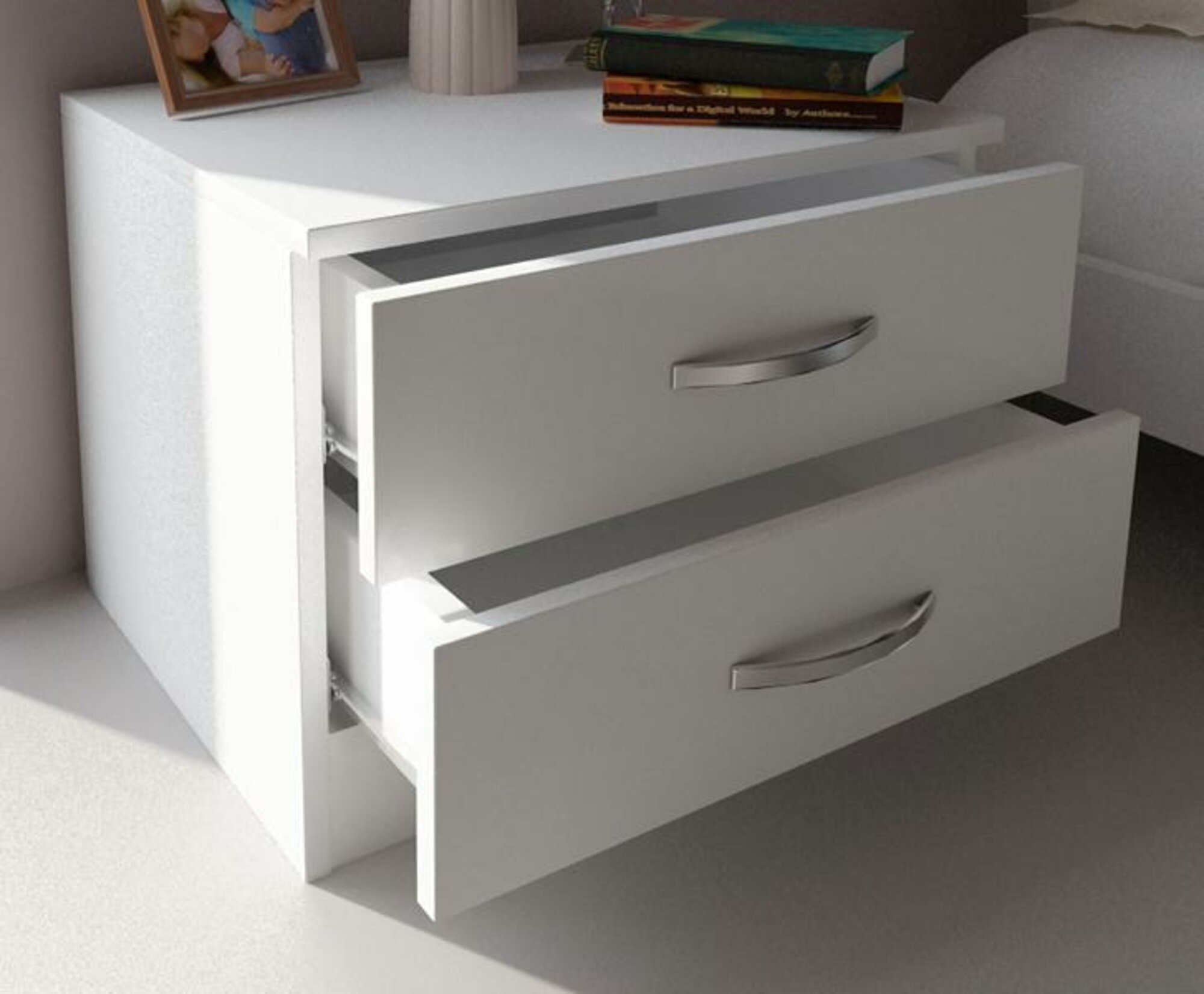 Entdecken Sie unser komfortables Schlafzimmer Möbel Set, das aus insgesamt 5 Teilen besteht. Das Set beinhaltet ein Bett, eine Kommode, zwei Nachttische und einen Kleiderschrank, alles in einem eleganten weißen Design. Hergestellt aus hochwertigem Holz, bietet es nicht nur eine moderne und zeitgenössische Ästhetik, sondern auch eine praktische Lösung für Ihr Schlafzimmer. Das Bett hat eine Liegefläche von 150 x 200 cm und ist mit einem USB-Anschluss ausgestattet, während die Kommode und Nachttische mit Schubladen und Regalen für zusätzlichen Stauraum versehen sind.