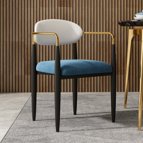 Unser Esstisch-Set mit Marmoroberfläche und Edelstahlgestell ist nicht nur ein Blickfang, sondern auch äußerst strapazierfähig und pflegeleicht. Die Kombination aus den Farben Schwarz, Blau, Gold und Weiß verleiht dem Raum eine moderne und dennoch zeitlose Note.