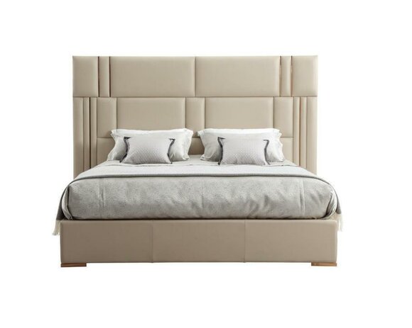 Das Bett besticht durch seine Kombination aus hochwertigem Holz und erstklassigem Stoff, was für Langlebigkeit und Stil steht. Die elegante Farbe Beige verleiht ihm eine zeitlose Eleganz und schafft eine ruhige und entspannende Atmosphäre im Raum.