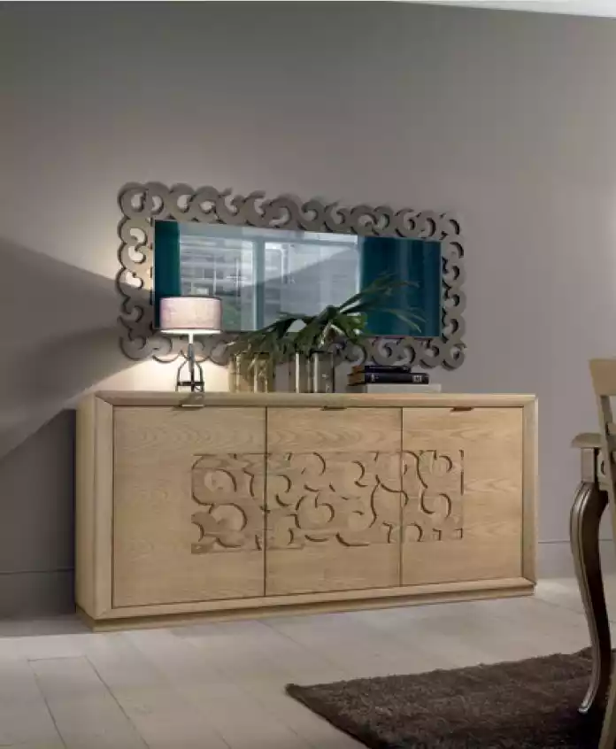 Entdecken Sie mit unserem Luxus Sideboard und Spiegel Set die perfekte Kombination aus Ästhetik und Funktionalität für Ihr Wohnzimmer. Gönnen Sie sich das ultimative Wohnaccessoire, das Ihren Wohnraum in eine Oase der Schönheit verwandelt.