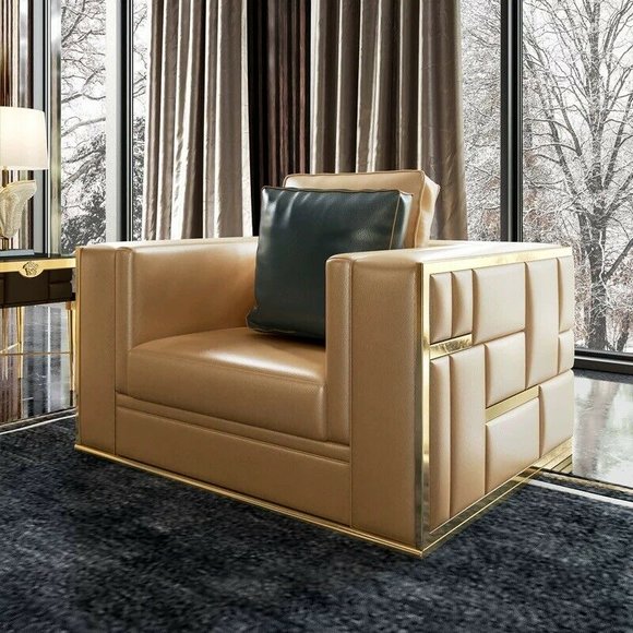 Tauchen Sie ein in Luxus und Eleganz mit dieser exklusiven Designer Couchgarnitur, die durch ihre Kombination aus Metallelementen und hochwertigem Leder besticht. Diese Garnitur vereint modernes Design mit erstklassigem Komfort und wird zum Highlight in Ihrem Wohnzimmer.