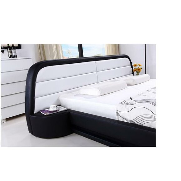 Die Farbgebung des Bettes ist mehrfarbig, hauptsächlich in den Farben Weiß und Schwarz gehalten. Diese Kontrastfarben verleihen dem Bett ein modernes und elegantes Aussehen, das sich gut in verschiedene Einrichtungsstile einfügt.