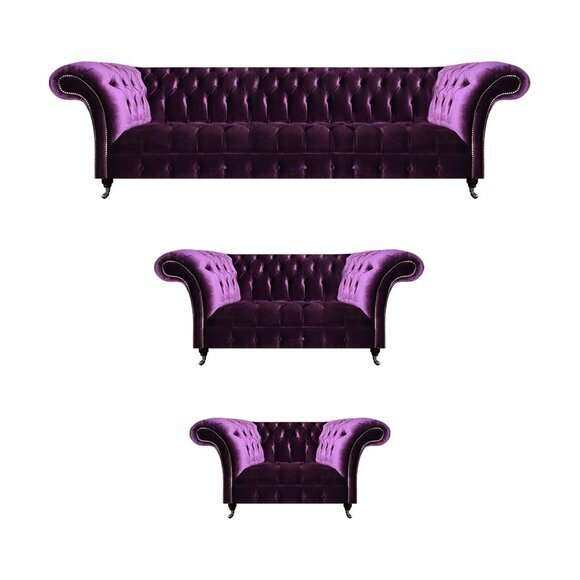 Moderne Chesterfield Lila Couchgarnitur Wohnzimmer Edle Sofas 3tlg Set
