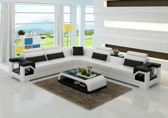 Moderne Ledersofa Couch Polster Sofa Couchen Ecksofa + USB