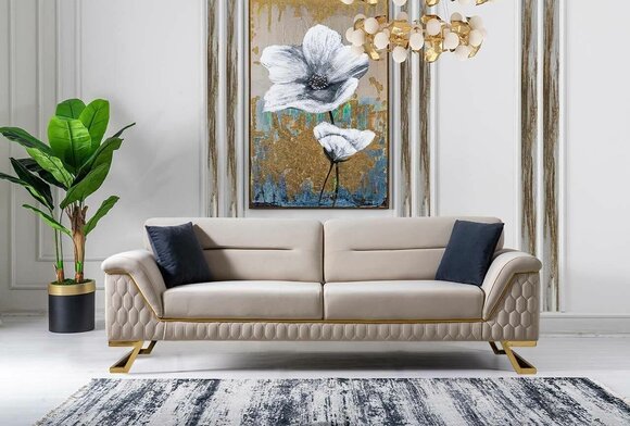 Egal, ob Sie sich entspannen, lesen oder einfach nur Ihre Lieblingsfernsehsendung genießen möchten, dieses 3-Sitzer-Sofa bietet Ihnen den idealen Rahmen dafür. Seine großzügige Sitzfläche und die gepolsterten Lehnen sorgen für maximalen Komfort und Gemütlichkeit.