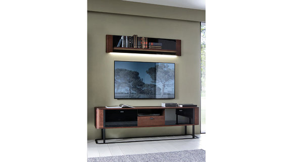 - Rückwand & Einlegeböden: MDF (Mitteldichte Holzfaserplatte), furniert & lackiert