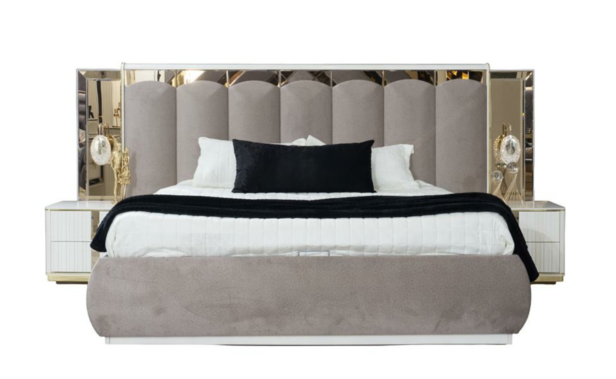 Entdecken Sie das elegante Schlafzimmer Set von JV Möbel, das aus einem doppelten Bett und zwei stilvollen Nachttischen besteht. Dieses moderne Set ist ideal für Jugendliche und Erwachsene und passt perfekt in jedes Schlafzimmer. Mit einer Liegefläche von 160 x 200 cm bietet das Bett optimalen Schlafkomfort. Die Maße des Bettes betragen ca. 247 x 205 x 140 cm und die Nachttische messen jeweils ca. 65 x 43 x 135 cm. Die attraktive graue Farbe und das hochwertige Holzmaterial sorgen für eine stilvolle Atmosphäre.