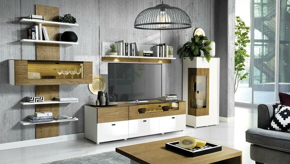 - **Rückwand & Einlegeböden:** MDF (Mitteldichte Holzfaserplatte), furniert & lackiert