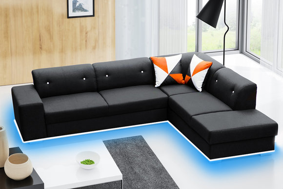 Dieses elegante Eckschlafsofa in Schwarz bietet Ihnen alles, was Sie zum Entspannen und Verweilen brauchen. Mit seinen großzügigen Maßen von ca. 285 x 220 cm oder 220 x 285 cm (Länge x Breite, je nach Aufbau) bietet es ausreichend Platz zum Entspannen und Verweilen mit Freunden und Familie. Die verstellbare Rückenlehne ermöglicht Ihnen, eine bequeme Position zum Sitzen oder Liegen zu finden. Die XXL-Liegefläche von ca. 220 x 130 cm verwandelt Ihre Couch im Handumdrehen in ein gemütliches Gästebett. Der praktische Bettkasten bietet zusätzlichen Stauraum für Decken, Kissen oder andere Utensilien. Die hochwertige Stoff- oder Kunstlederverarbeitung (je nach gewählter Gruppe) sorgt für ein angenehmes Sitz- und Liegegefühl und eine lange Lebensdauer. Die moderne Formensprache und die Farbe Schwarz fügen sich harmonisch in jeden Einrichtungsstil ein.