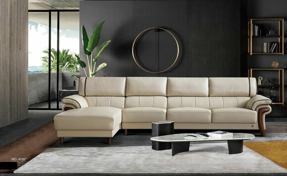Produktbezeichnung: Sofa Eckcouch Designer Sitz Polster Ecke Ledercouch Wohnlandschaft Perlweiss-Braun