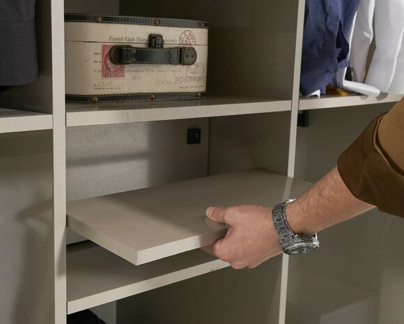 Das moderne Design des Eckschranks fügt sich nahtlos in jeden Raum ein und verleiht ihm einen Hauch von Raffinesse. Die Telegrau 1-Farbgebung verleiht dem Schrank eine zeitgemäße Ästhetik, die sowohl modern als auch ansprechend ist.