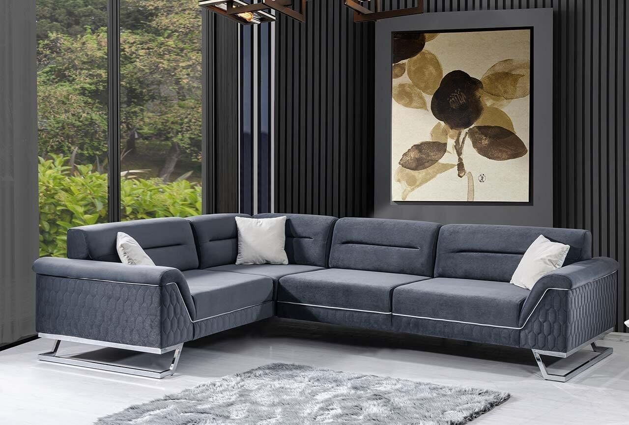 Stilvolle Graue L-Form Couch Wohnzimmer Designer Stoffsofa Eckcouch Sofort