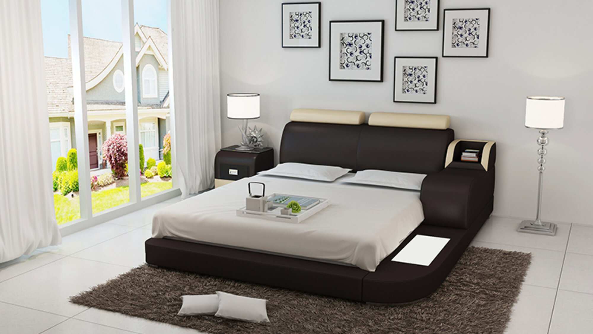 Dieses Lederbett kombiniert Kunstleder und echtes Leder und strahlt Exklusivität und Luxus aus. Ob als Wasserbett, Designerbett oder Doppelbett, es passt sich perfekt an Ihren Raum an. Bitte beachten Sie, dass einige Aspekte unserer Produkte wie Farbe, Material oder Größe auf Kundenwunsch angepasst werden können. Bitte erkundigen Sie sich, ob das Produkt, an dem Sie interessiert sind, individuell angepasst werden kann.