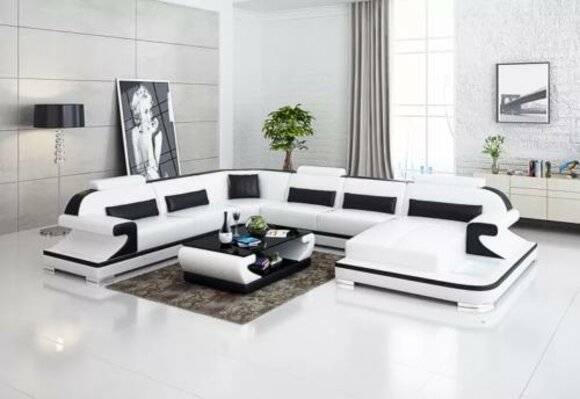 Diese stilvolle Wohnlandschaft in zeitlosem Schwarz-Weiß bringt Eleganz und Funktionalität in Ihr Wohnzimmer. Die großzügige Eckcouch bietet viel Platz zum Entspannen und Verweilen mit Freunden und Familie. Die U-Form ermöglicht eine optimale Raumausnutzung und schafft eine einladende Atmosphäre.
