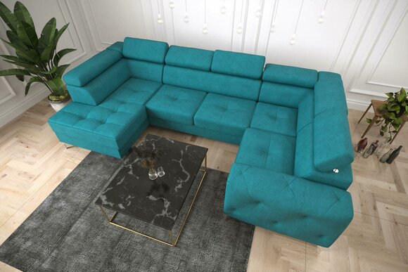 Mit seiner U-förmigen Konfiguration und seinem hochwertigen Polster bietet dieses Ecksofa einen idealen Ort für gemütliche Abende mit der Familie oder Freunden. Gönnen Sie sich den Luxus und den Komfort dieser edlen Wohnlandschaft, die zum Mittelpunkt Ihres Wohnzimmers wird.