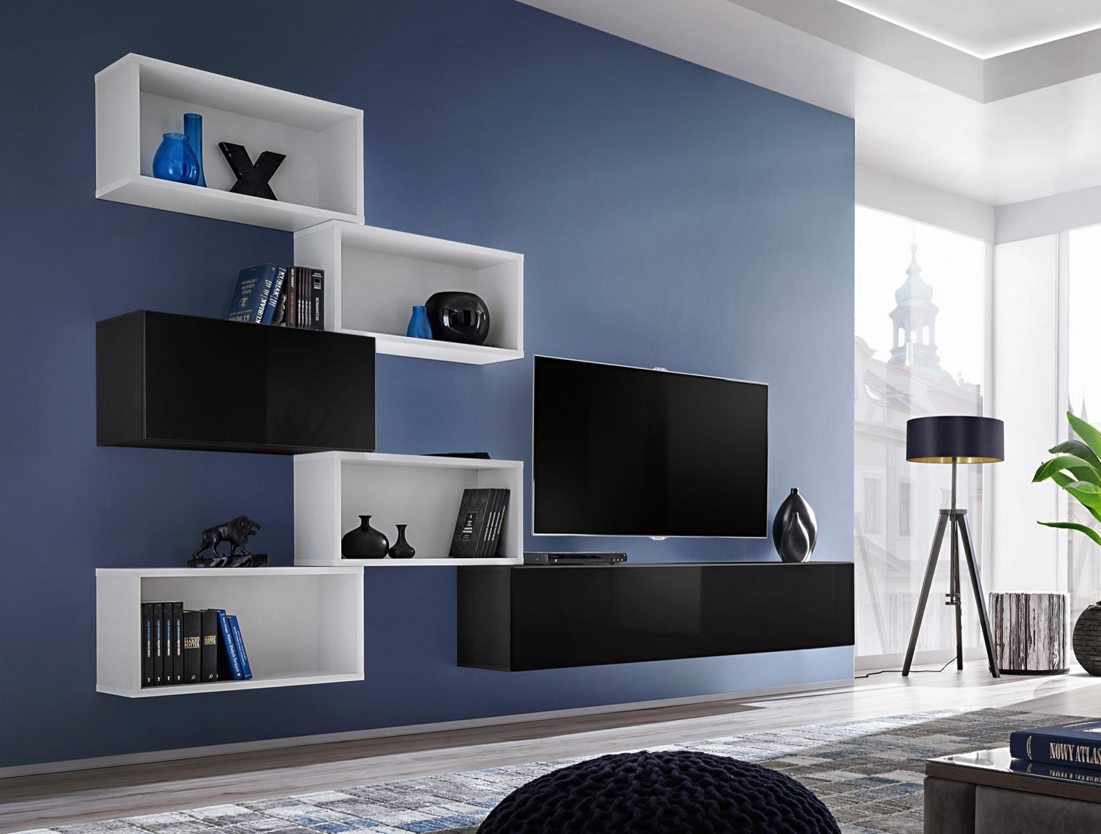 Entdecken Sie die beeindruckende Wohnwand Garnitur von JV Möbel, die mit ihrem modernen Design und der eleganten schwarzen Farbe in jedem Wohnzimmer zum Blickfang wird. Diese stilvolle Kombination aus Lowboard und Wandregal bietet Ihnen nicht nur eine großzügige Ablagefläche von ca. 280 x 32 x 175 cm, sondern auch 4 Regalfächer für eine praktische und ansprechende Aufbewahrung. Gefertigt aus hochwertigem dunklem Holz und ausgelegt für die Wandmontage, vereint dieses Möbelstück moderne und zeitgenössische Stilelemente.